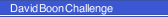Die David Boon Challenge wurde vom Gründungsvater des Tegernseer Cricket Clubs, Wolfgang Albert, ins Leben gerufen. Es ist ein Turnier, das jedes Jahr im Münchner Raum stattfindet und an die legendäre 52 (not out) von David Boon erinnern soll.